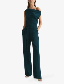Reiss Maple Off-shoulder Belted-waist Stretch-woven Jumpsuit