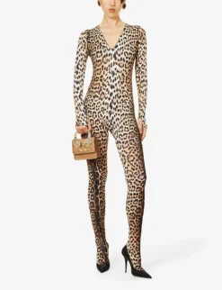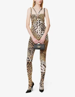 Roberto Cavalli Leopard-print Slim-fit Stretch-woven Jumpsuit