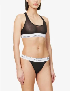 Calvin Klein Sheer Marquisette Floral-embroidered Recycled Nylon-blend Lace Bra