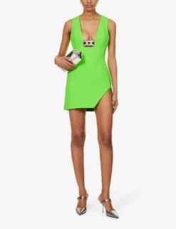 Plunge-neck Sequin-embellished Woven Mini Dress