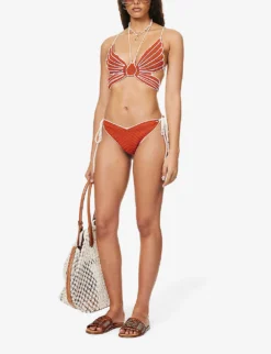 Bead-embellished Low-rise Crochet-knit Midi Skirt