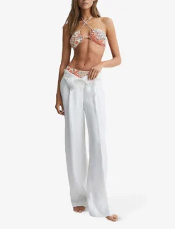 Reiss Maple Off-shoulder Belted-waist Stretch-woven Jumpsuit