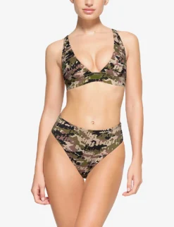 Plunge-neck Camouflage-print Recycled Stretch-nylon Bikini Top