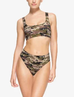 Scoop-neck Camouflage-print Recycled Stretch-nylon Bikini Top