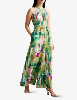 Ted Baker Ednarr Beach Hydrangea-print Cotton Sarong And Scrunchy Set