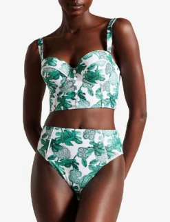 Ted Baker Orellaa Floral-print High-rise Stretch-recycled Polyamide Bikini Bottoms
