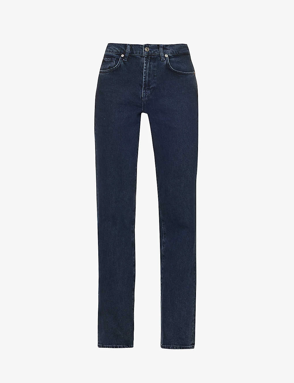- Regular fit, high-rise, straight leg, belt loops, five pockets, brand patch at back, straight cuffs