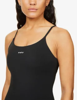 - Scoop neck, adjustable shoulder straps, brand print at front, slim-fit, soft moulded cups with removeable padding, seamless
