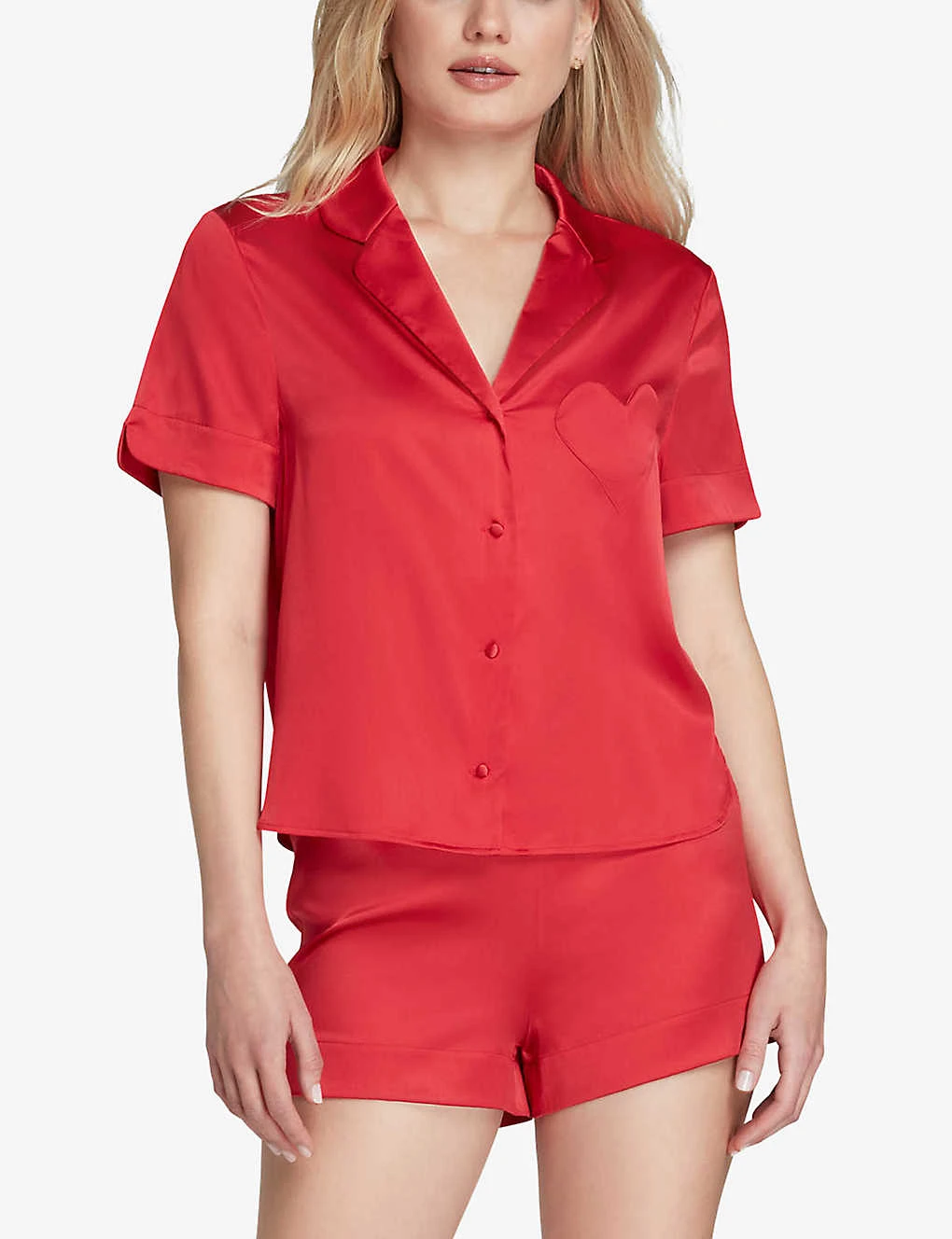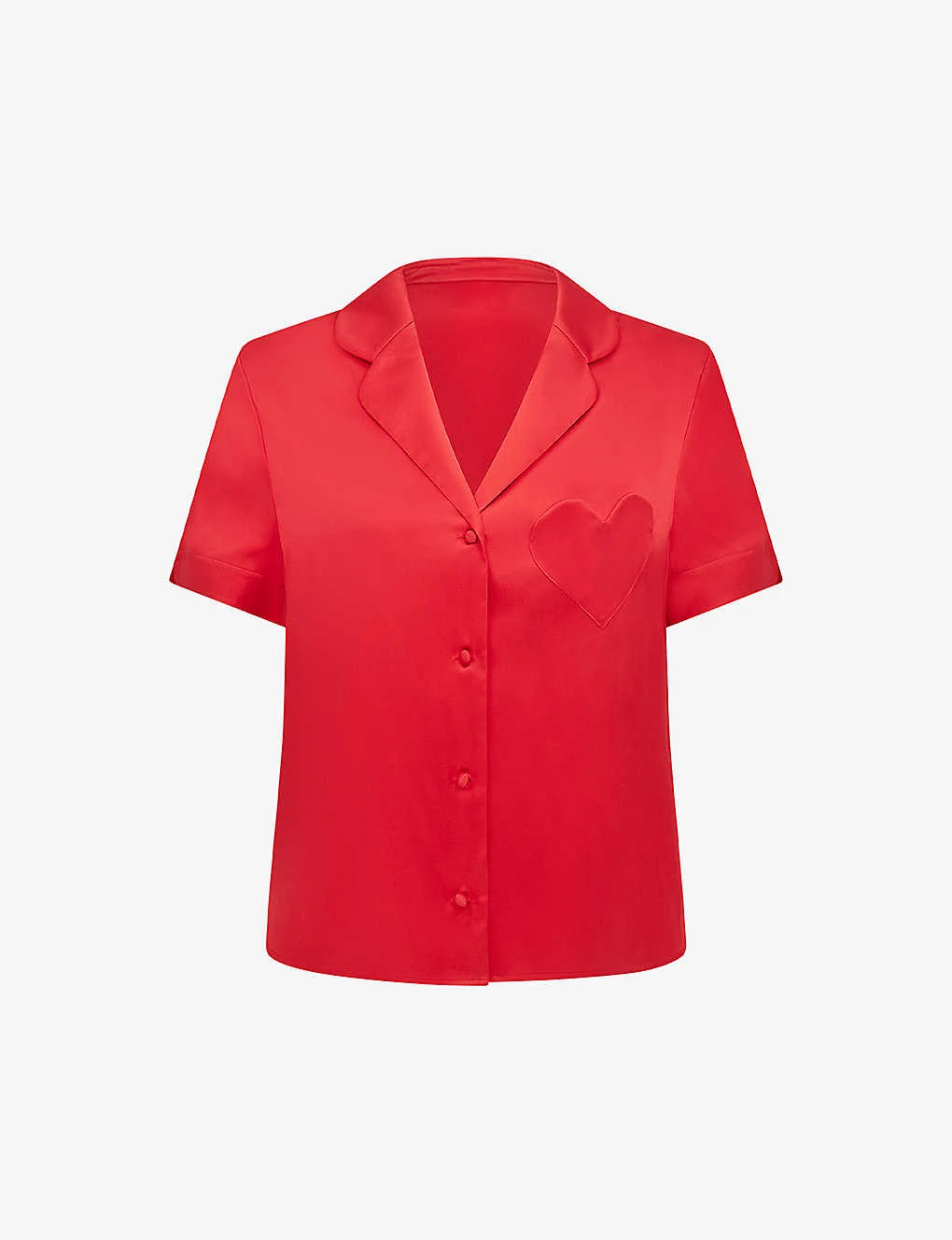 AGENT PROVOCATEUR Joie Heart-pocket Stretch-silk Pyjama Shirt
