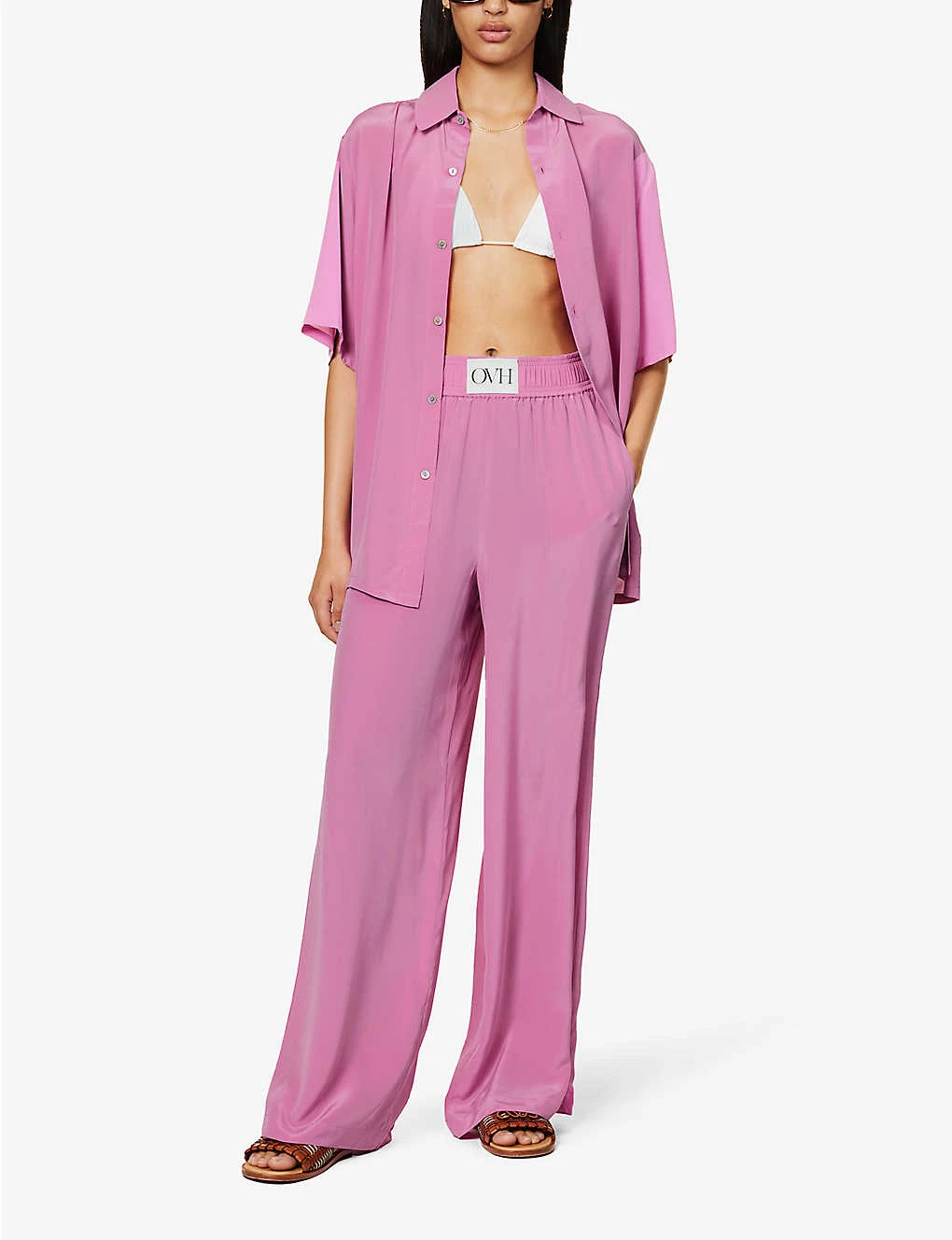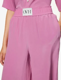 - Relaxed fit, high rise, branded elasticated waistband, two slip pockets at sides, crepe texture