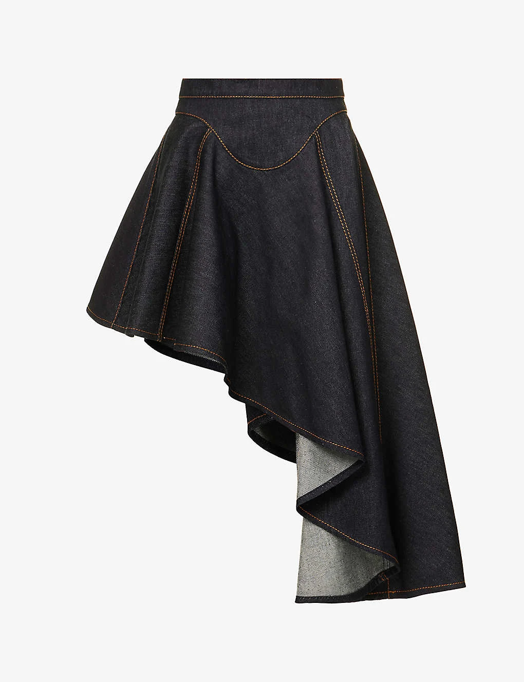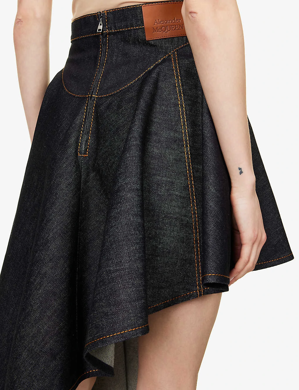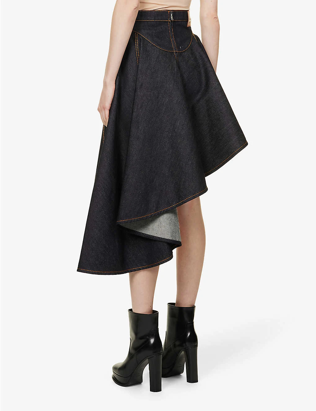 Alexander McQueen Asymmetric-hem Denim Midi Skirt