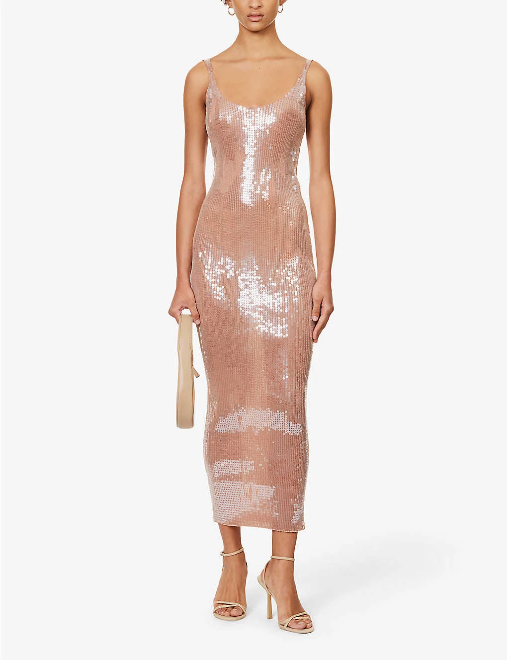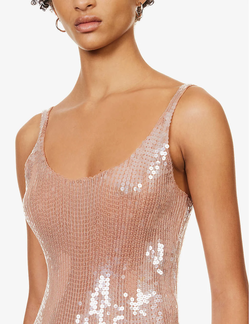 - Slim fit, scoop neckline, sleeveless, ribbed texture, all-over sequin embellishment