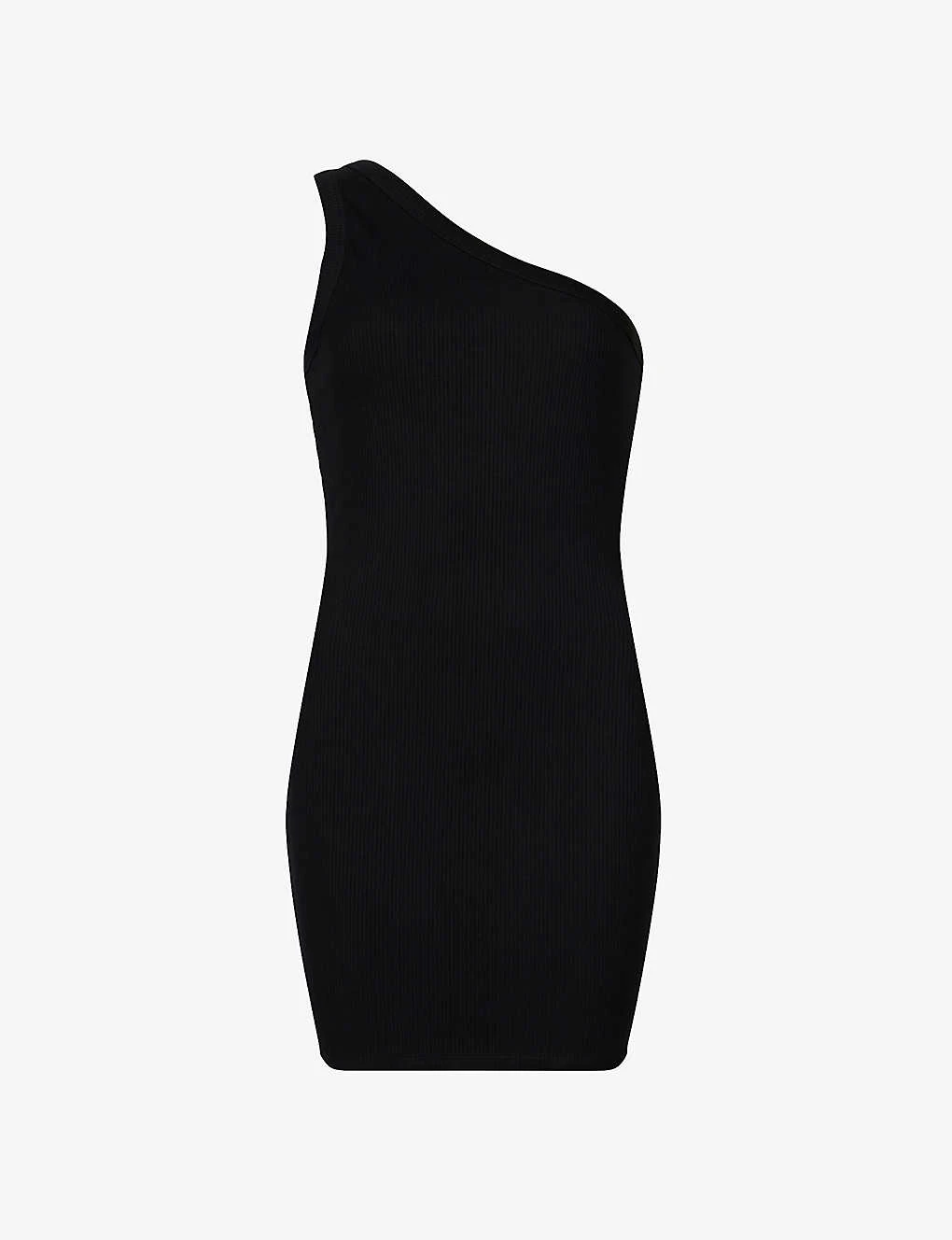 - Fitted, one shoulder, asymmetric neckline, all-over ribbed fabrication