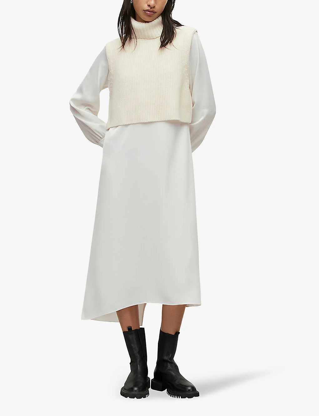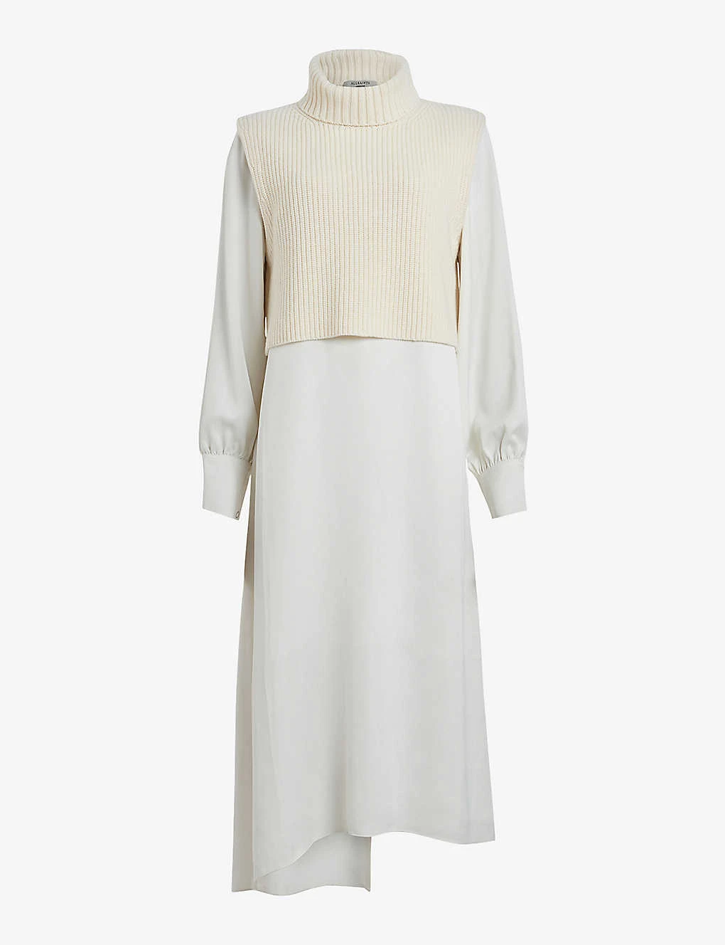 AllSaints Zoey 2-in-1 Recycled-polyester Blend Midi Shirt Dress And Wool-blend Jumper