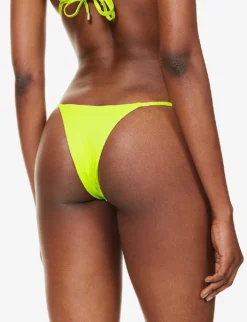 - High-rise, elasticated waistband, high leg, medium coverage at back, fully lined