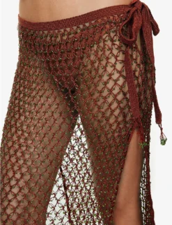 Bead-embellished Low-rise Crochet-knit Midi Skirt
