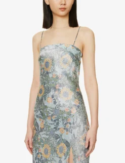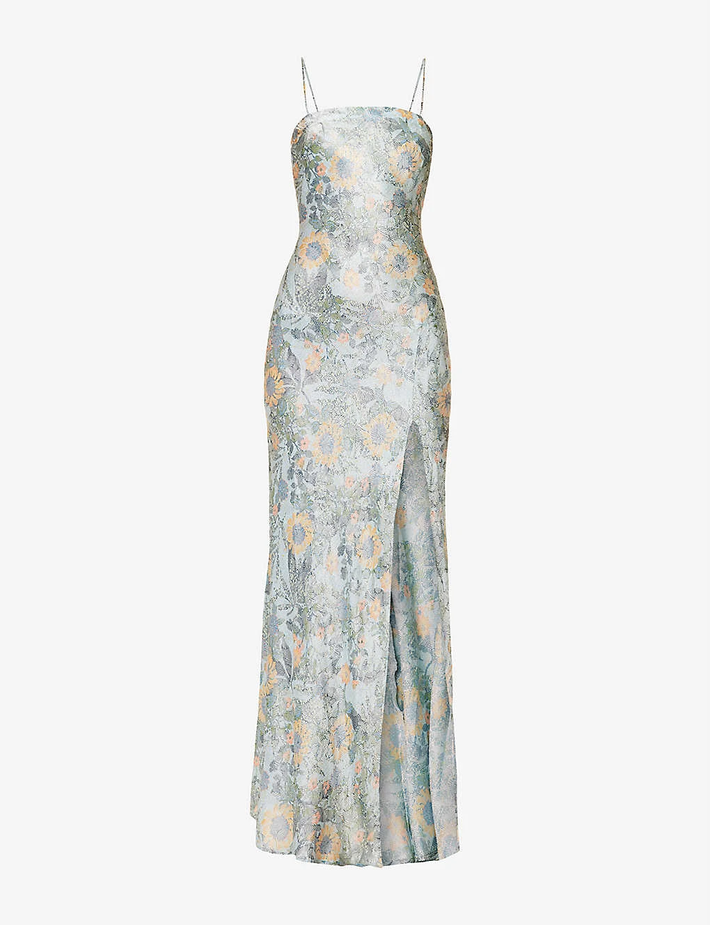- Slim fit, square neckline, shoulder straps, all-over print, split at front