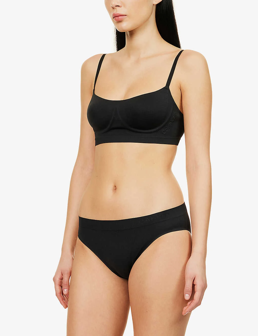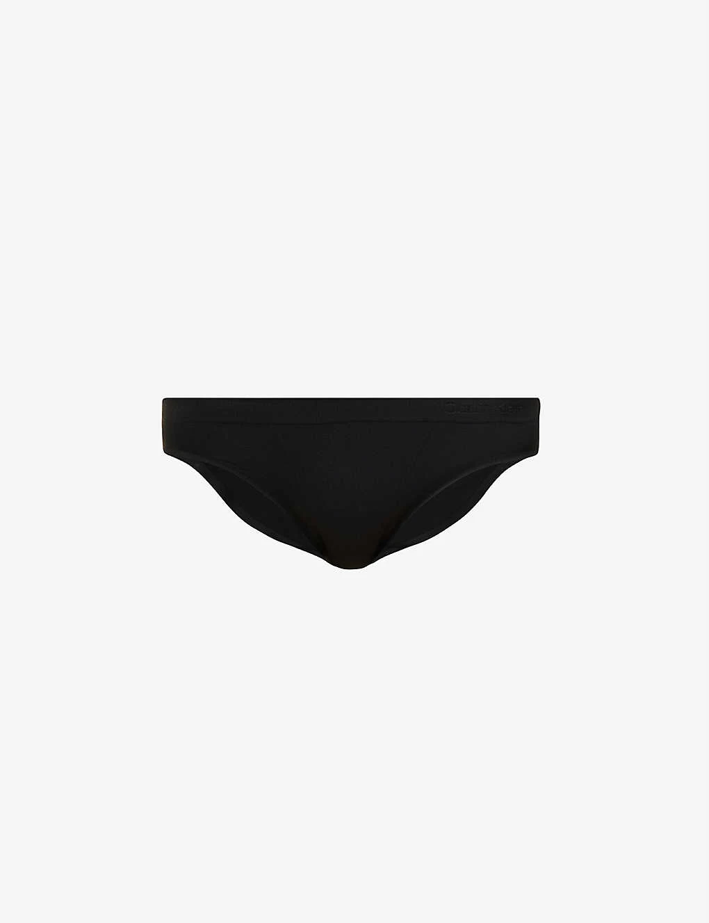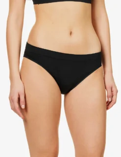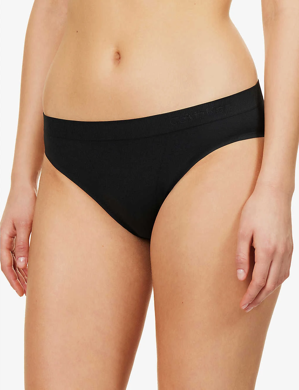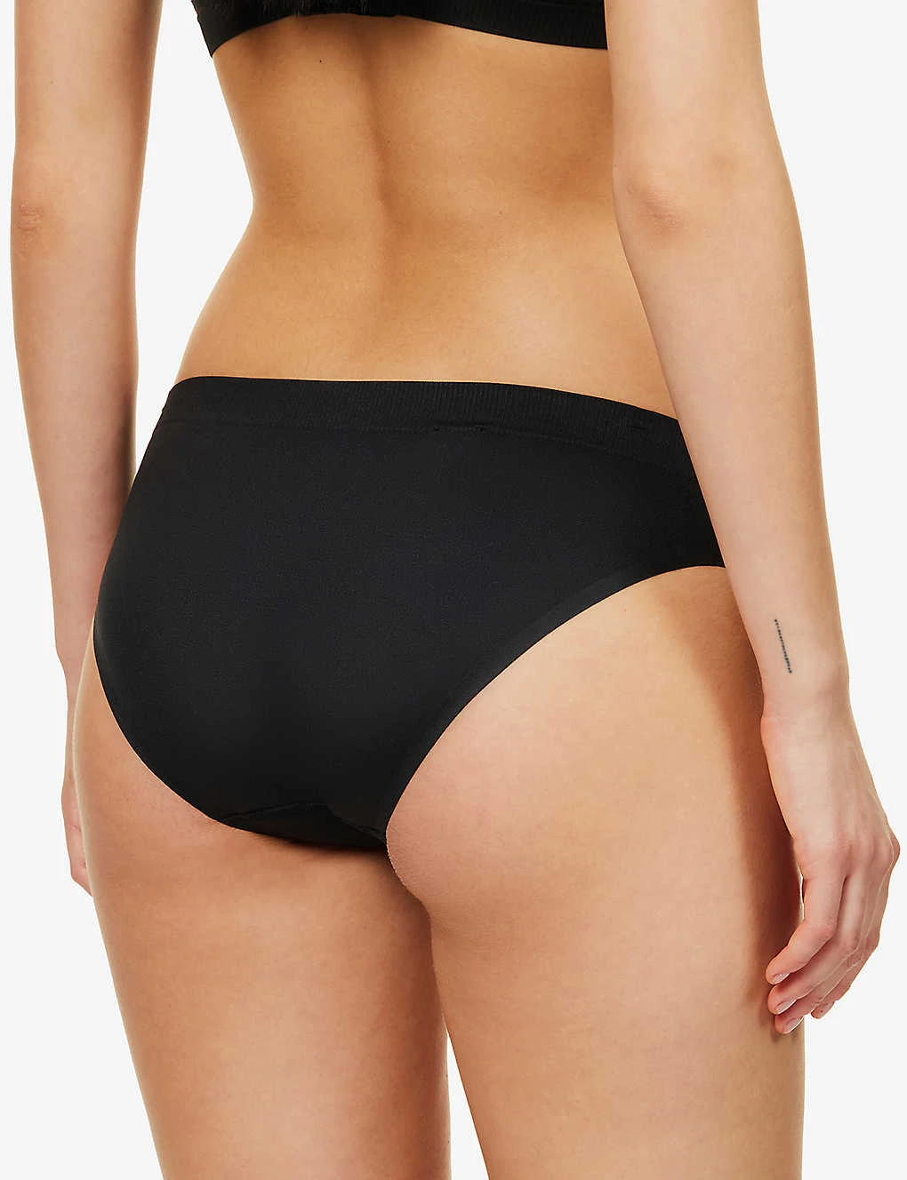 - High-rise, elasticated branded waistband, seamless, mid-coverage at back, lined gusset