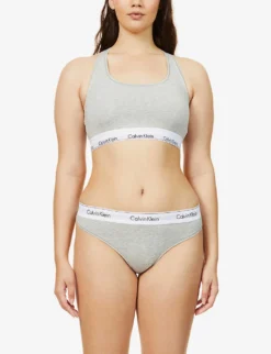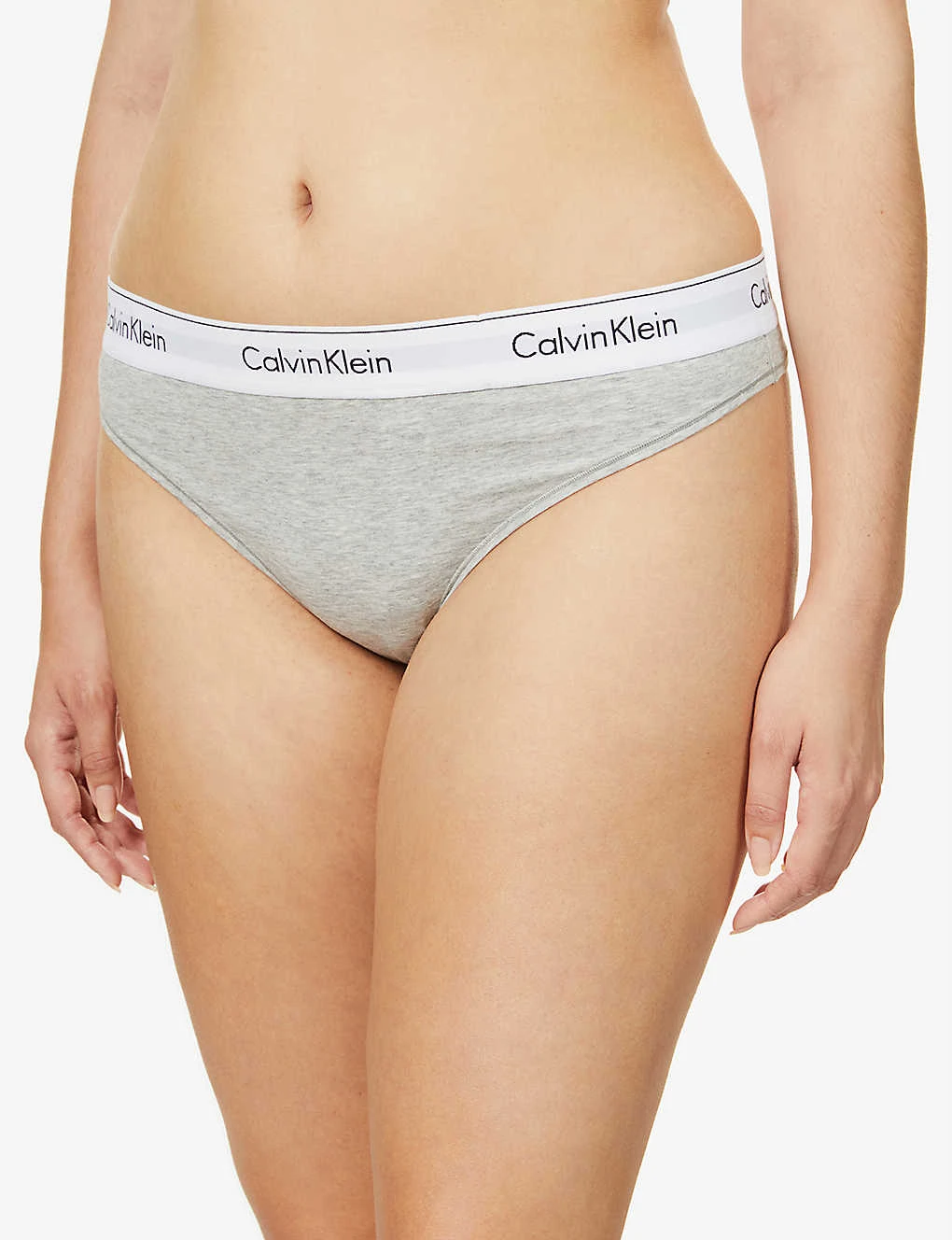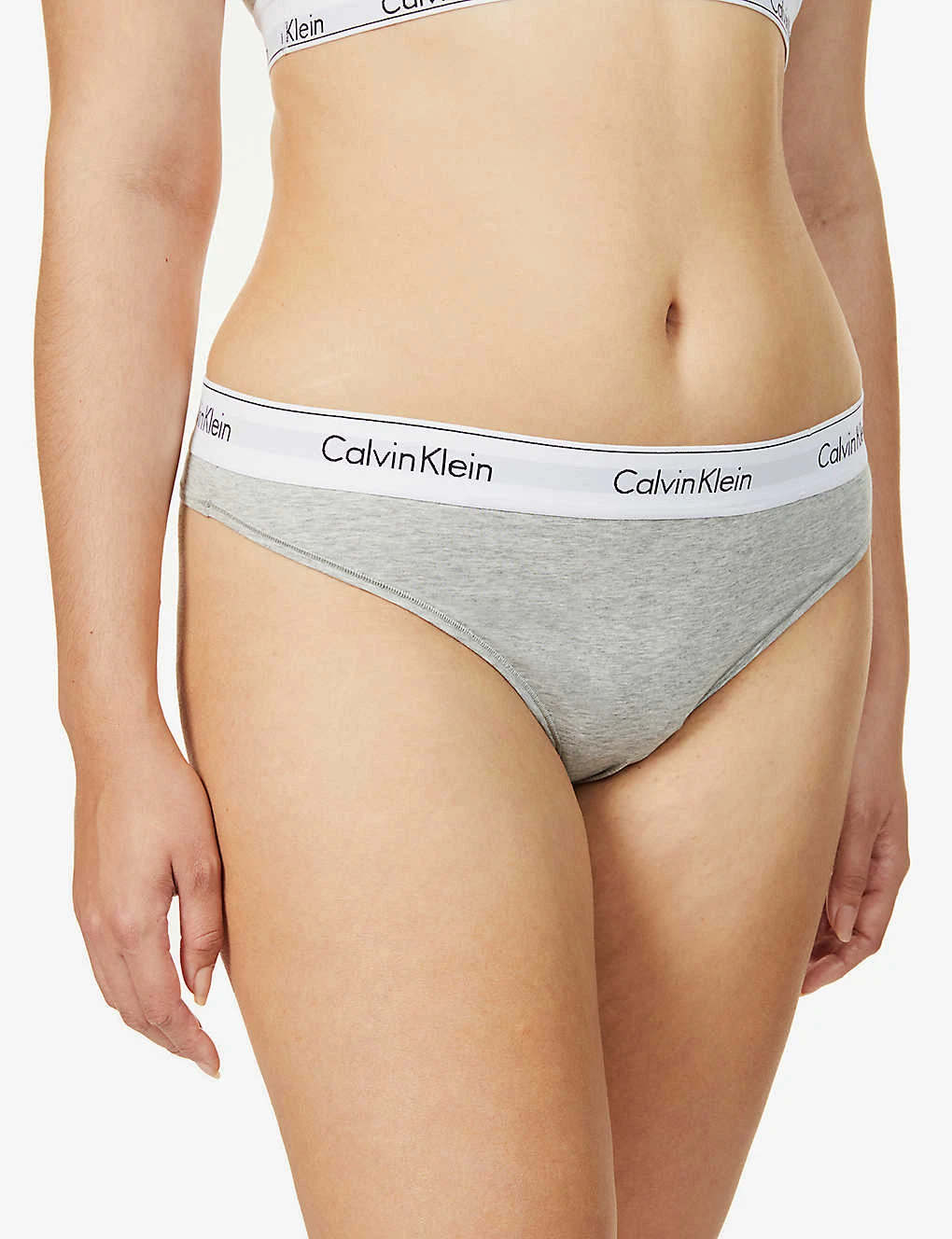 - High-rise, branded elasticated waistband, high leg, v-string at back, cotton gusset