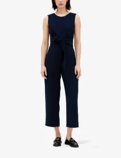 - Round neck, sleeveless, square-neck at the back, 7/8 trousers, belted waist