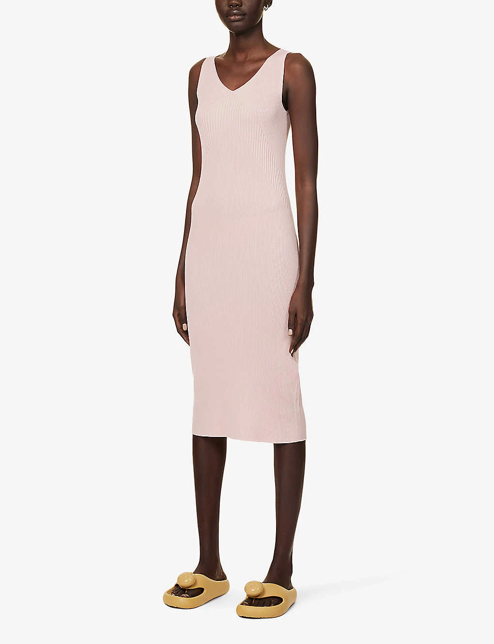 - Regular fit, V-neckline, sleeveless, low V-cut back, ribbed knit texture