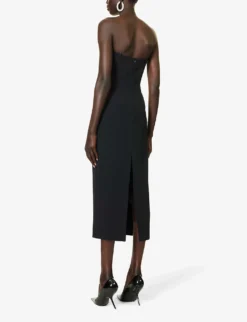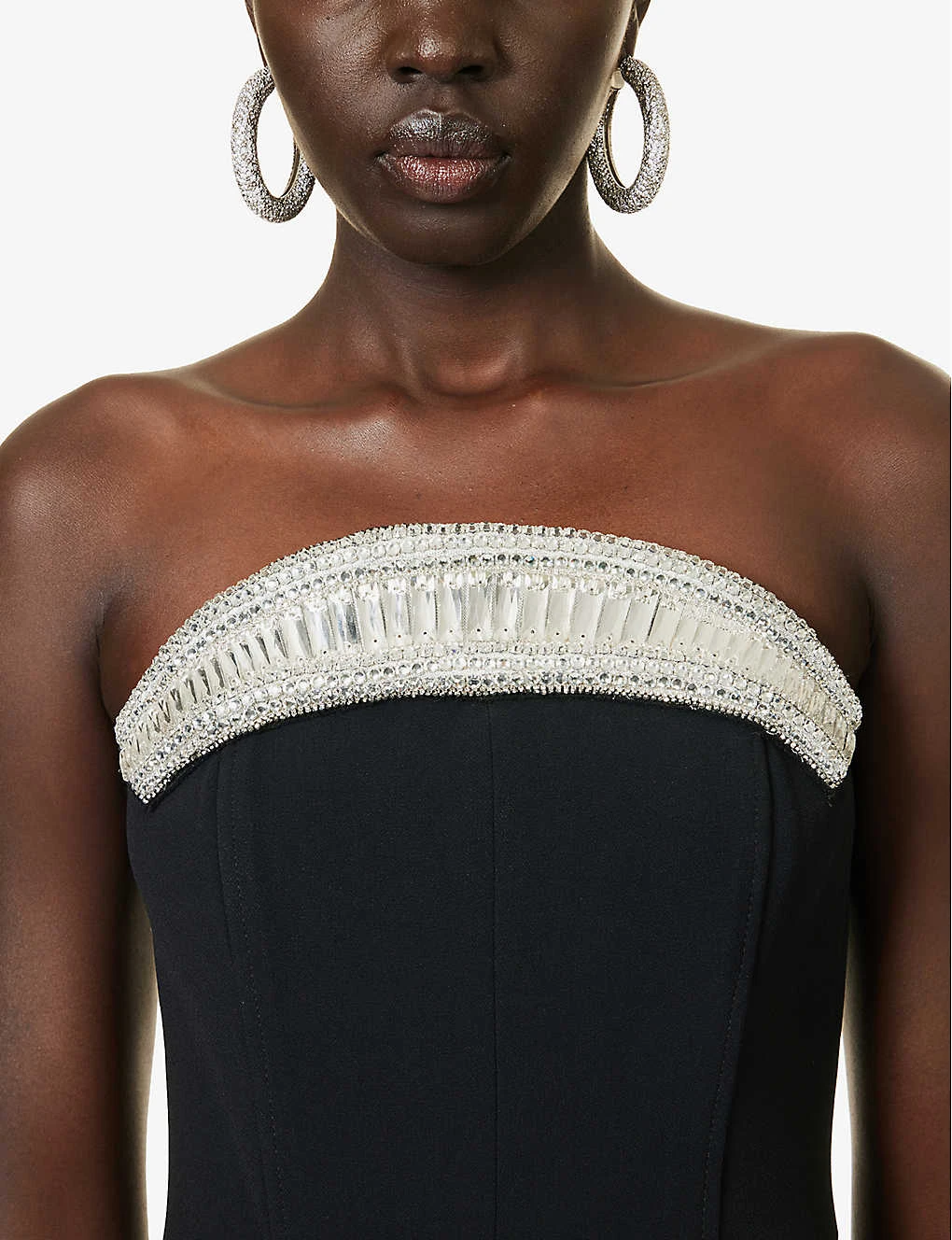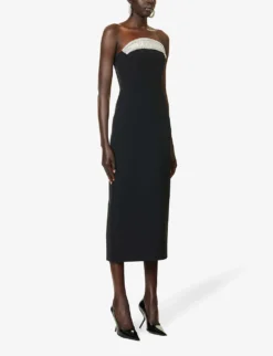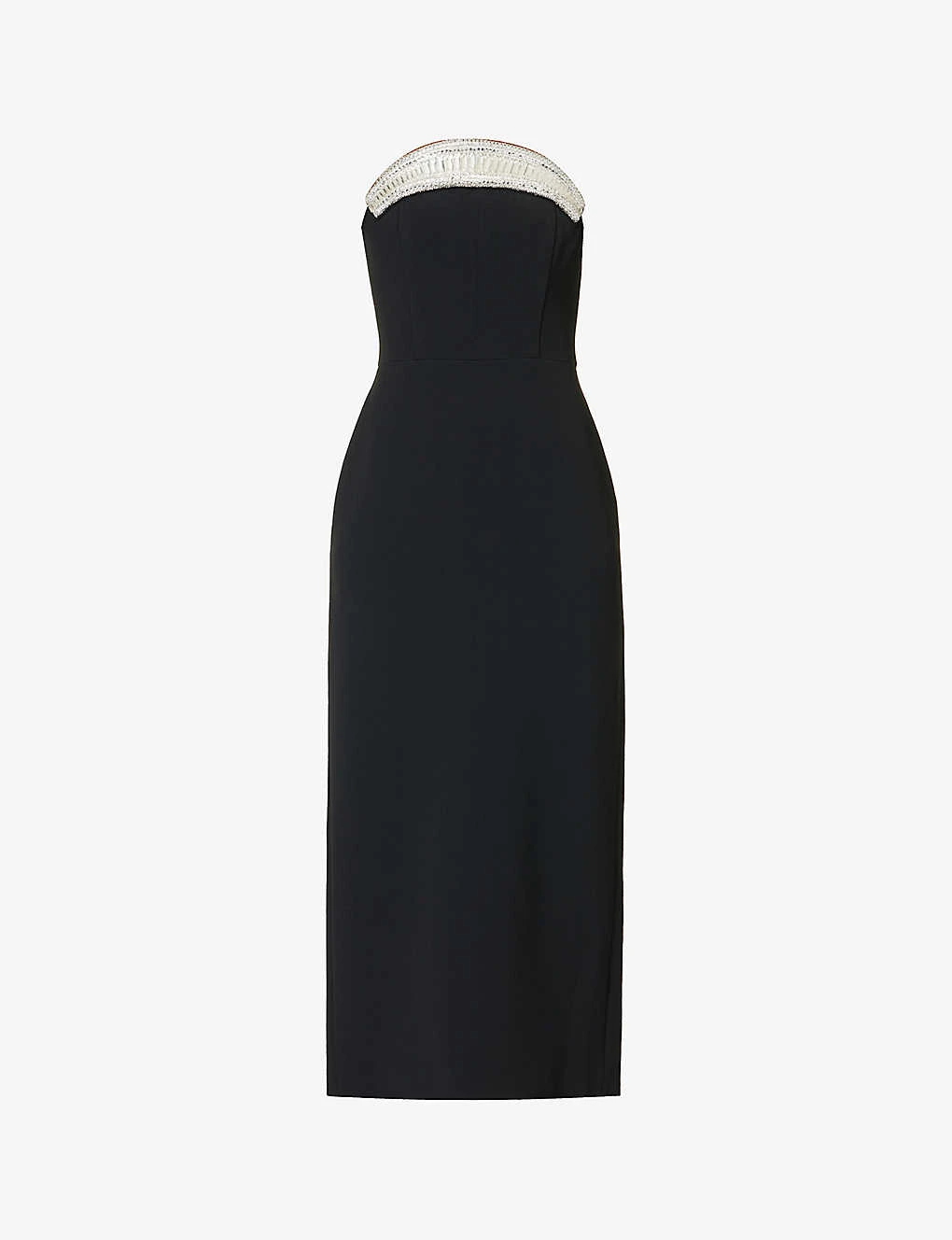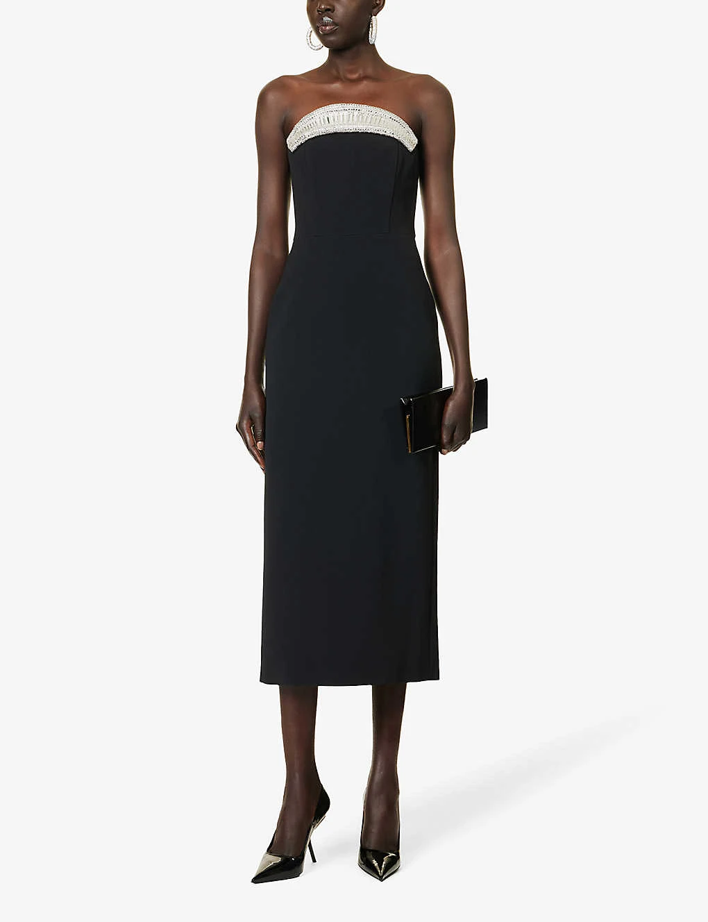 Embellished-neckline Slim-fit Stretch-woven Midi Dress