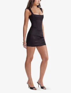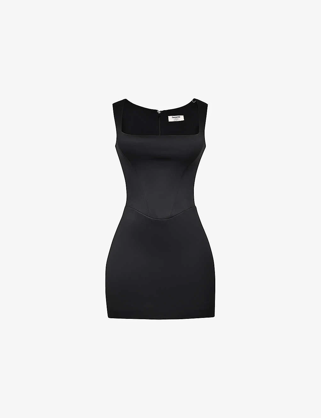 - Square neck, wide straps, slim fit, corseted bodice, mini length