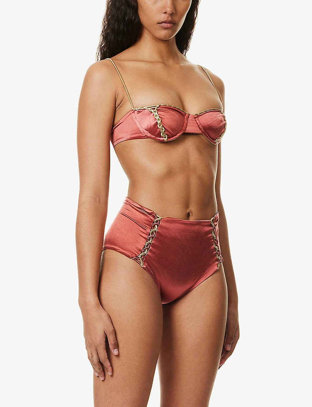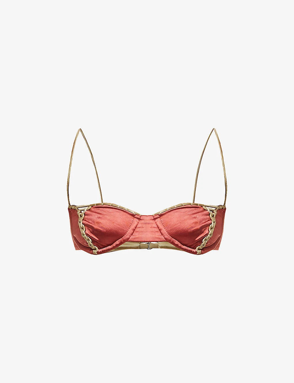- Half-cup, underwired, adjustable straps, interlock weave design, branded silver-toned hardware