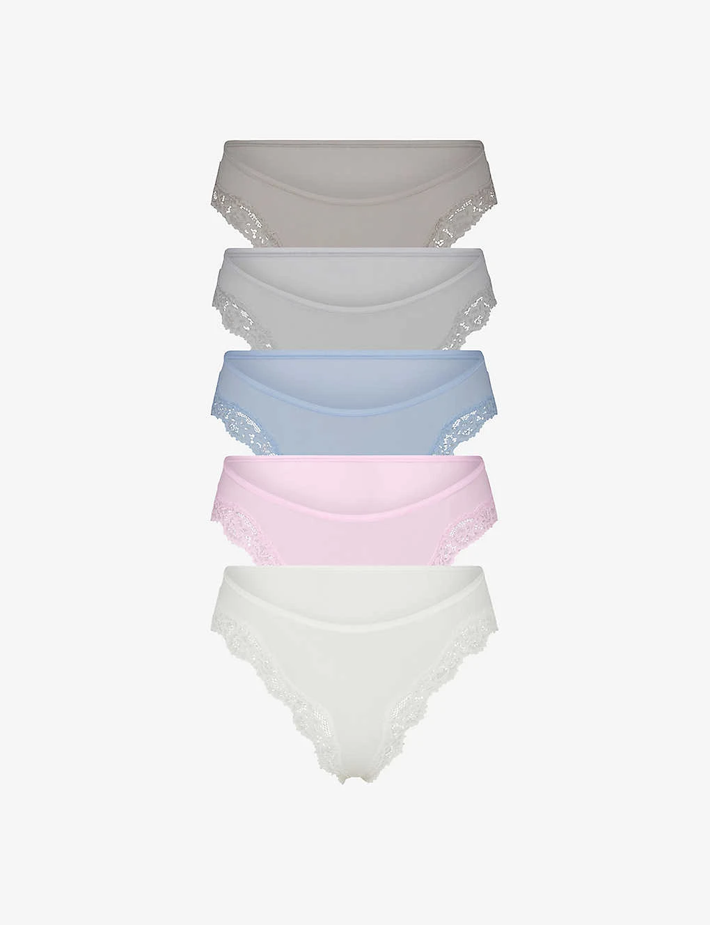 - Lace trims, full coverage, high cut leg, pack of five, multiple colours
