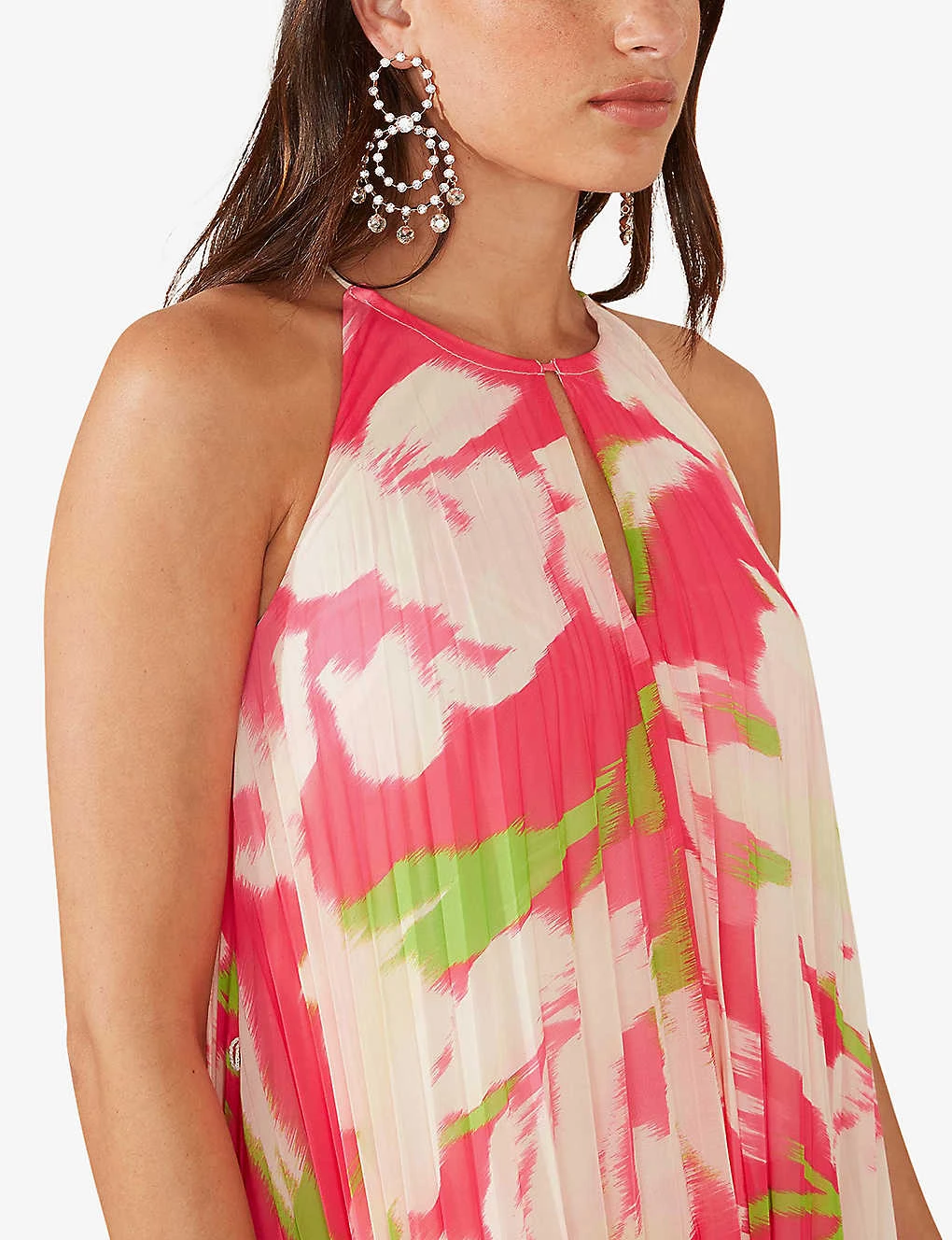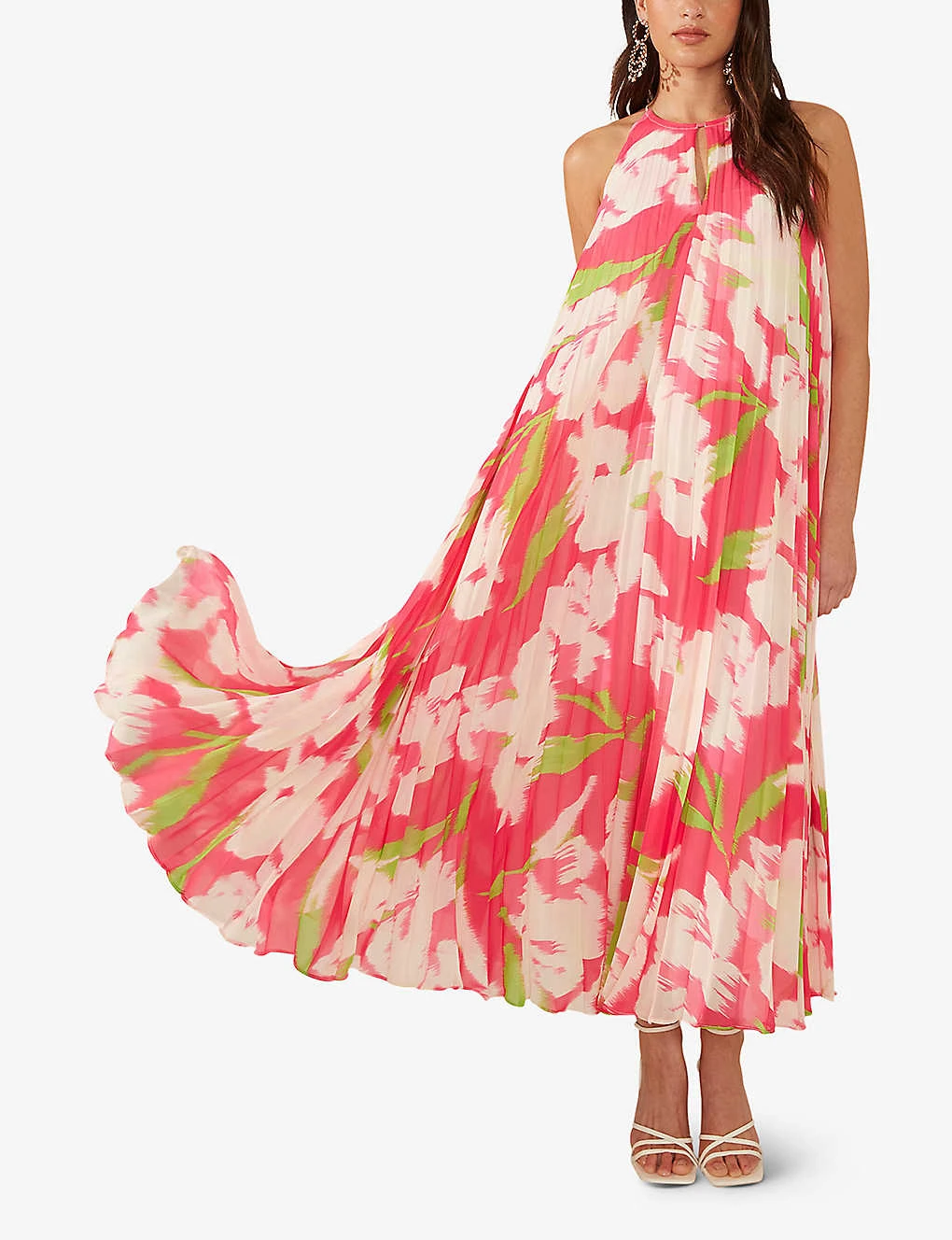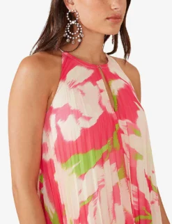 - Regular fit, halterneck, sleeveless, pleated design, all-over floral print