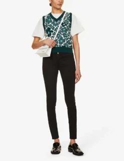 - Regular-fit, high-rise, belt loops, five pockets, branded silver-toned hardware, all-over faded wash and whiskering, contrast stitching, V-shaped yoke at back, partially lined, raw hems