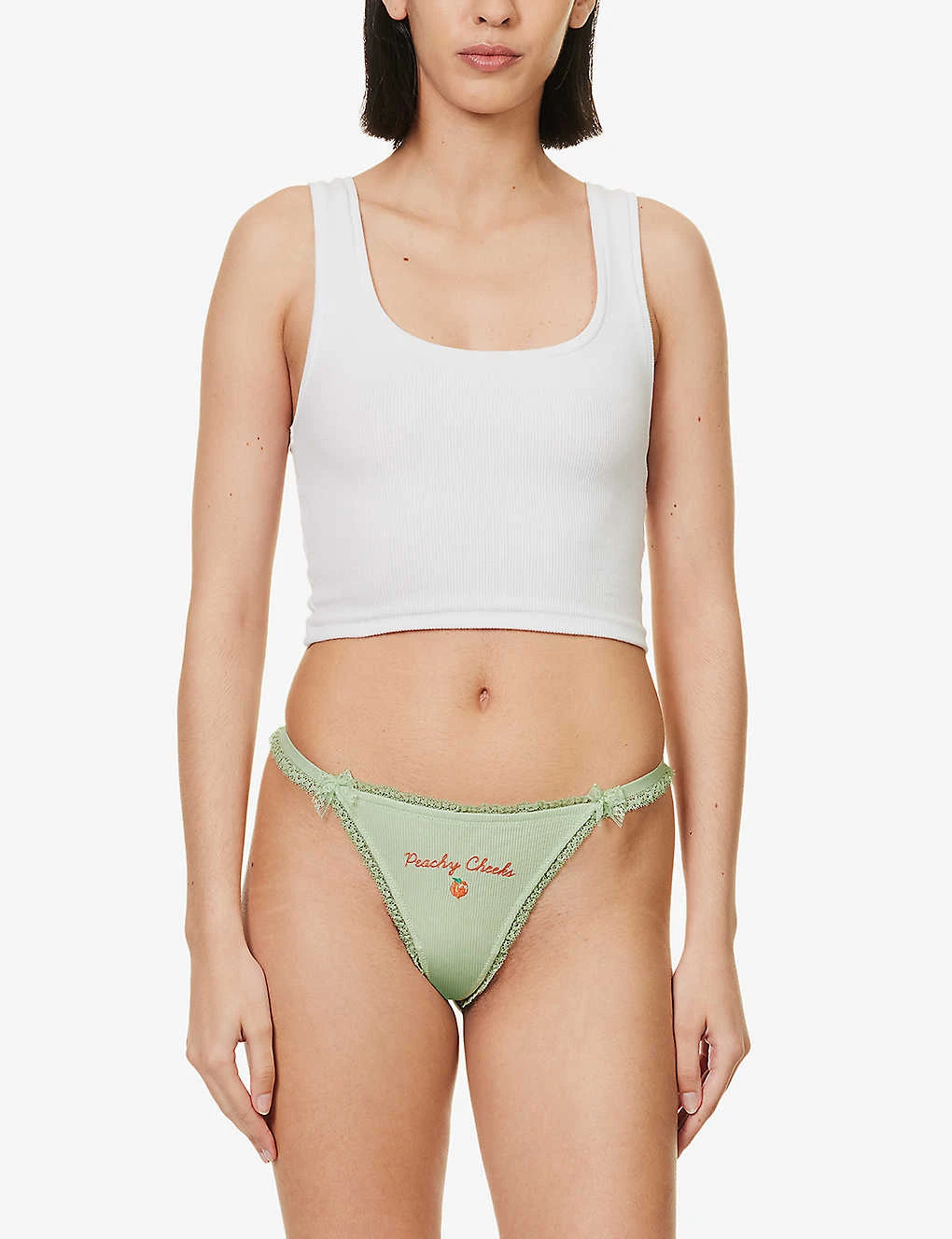 Fruity Slogan-embroidered Stretch-jersey Thong