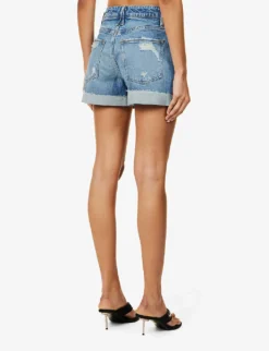 GOOD AMERICAN Good Girlfriend Petite Faded-wash Recycled-denim Shorts
