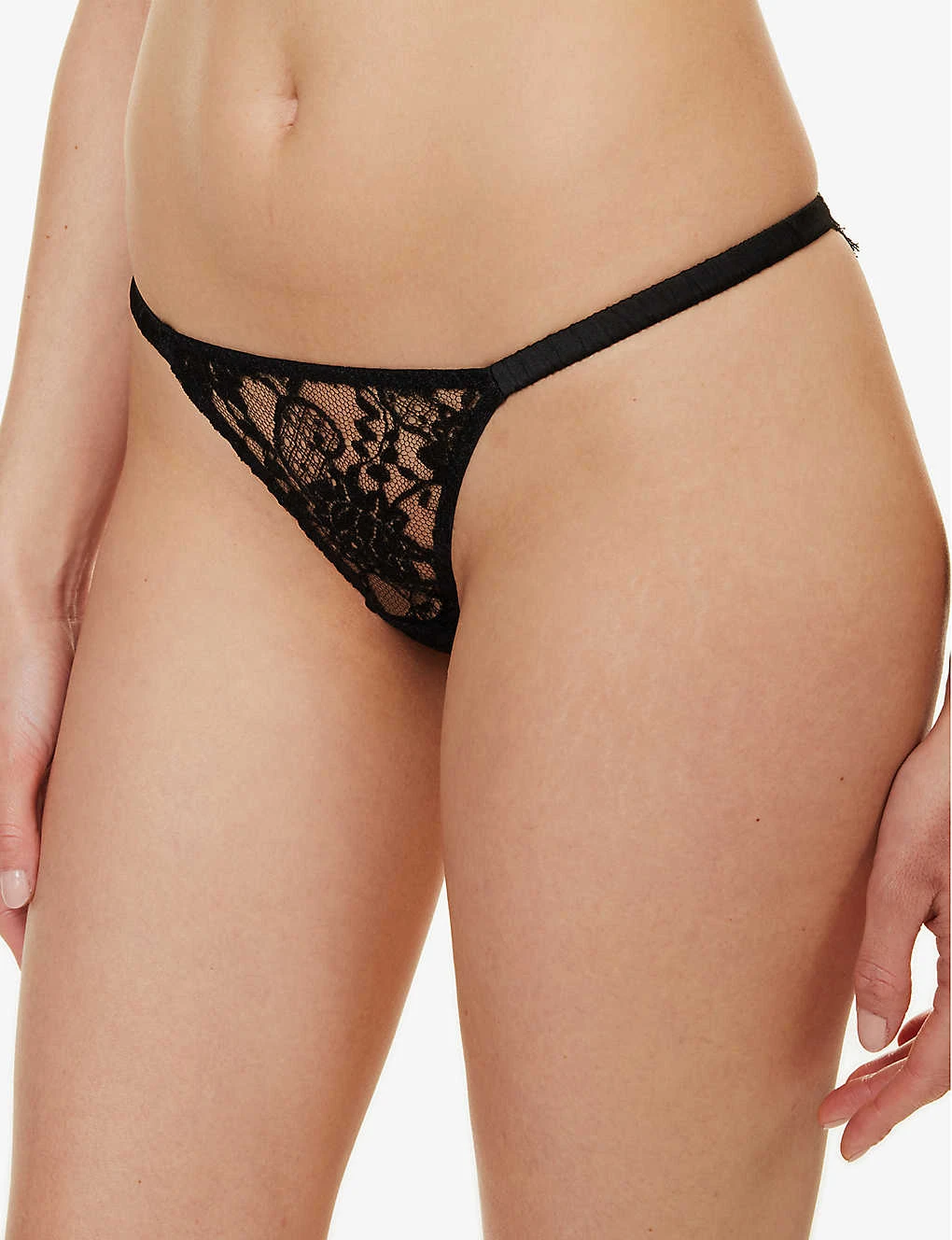 - Regular-fit, mid-rise, elasticated waistband, semi-sheer, all-over floral lace panels, mid-coverage at back, lined gusset, scalloped trims
