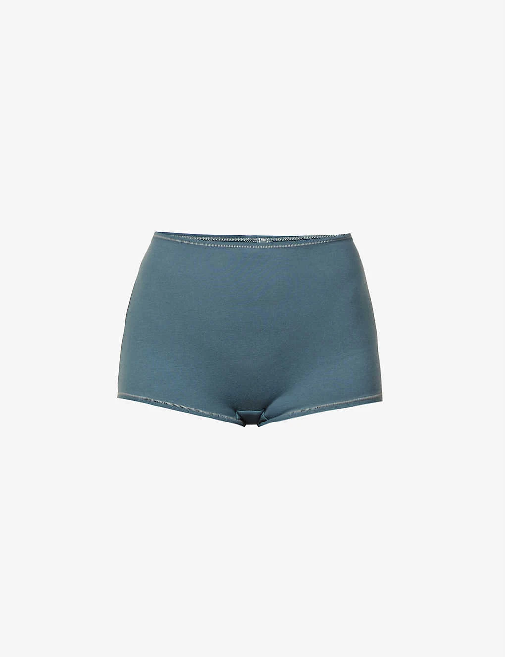 - Fitted, high rise, contrasting exposed seams, lined gusset, full coverage at back