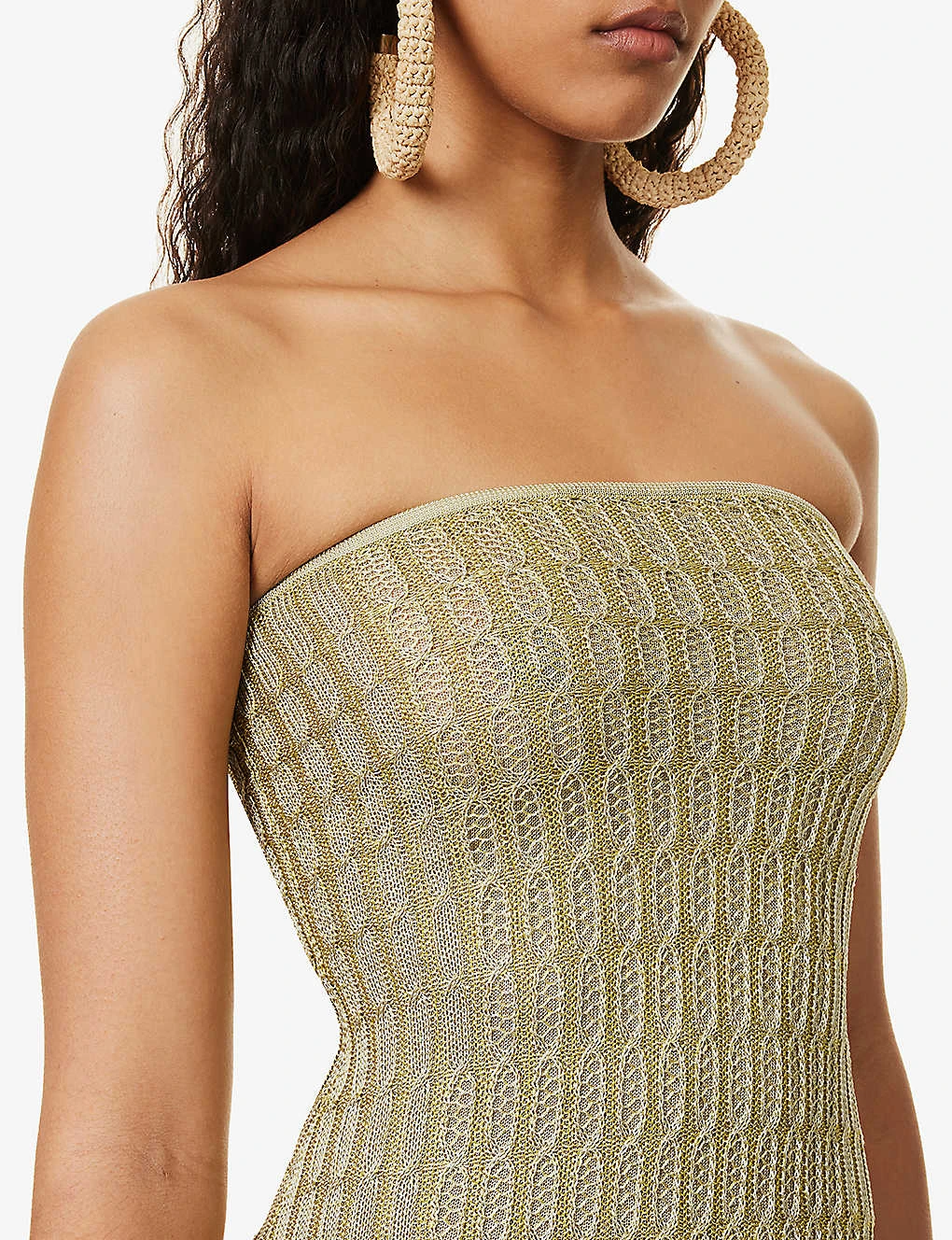 Honeycomb Strapless Rayon-knitted Midi Dress