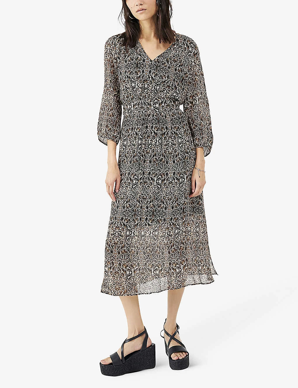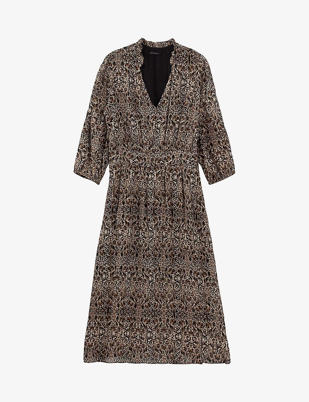 - V-neck, three-quarter-length balloon sleeves, all-over arabesque-print, fully lined