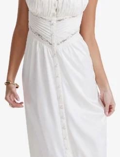 Illiana Scalloped-trim Bodice-top Stretch-silk Maxi Dress