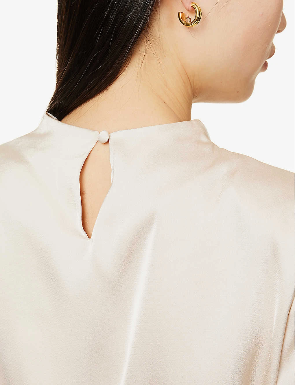 - Regular fit, round neckline, long flared sleeves, flared hem