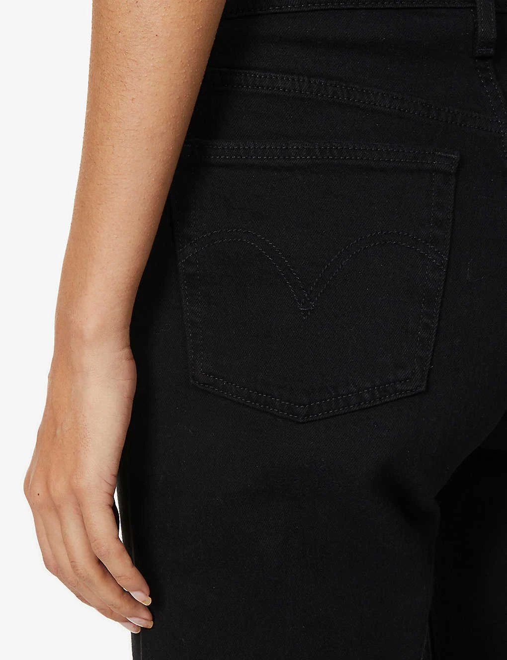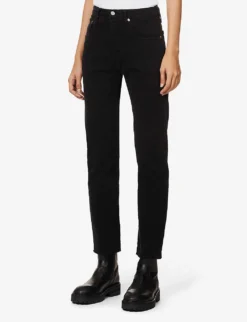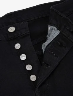 Levi’s stretch-denim jeans Exposed button and concealed button-fly fastening at front Straight, cropped, high-rise, belt loops, five pockets, branded hardware, branded patch at back waistband, V-shaped yoke at back, brand tab at back pocket 97% cotton, 2% polyester, 1% elastane Machine wash True to size Size 27: rise 10″”, inside leg 27″”, leg opening 12″” Model is 5ft 10” and wears a size 27