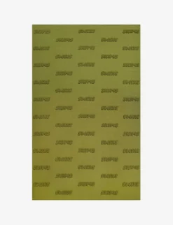 - Rectangular shape, all-over logo-embossed, towelling texture