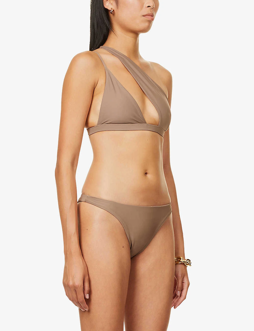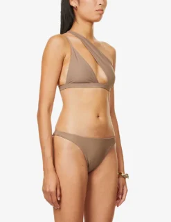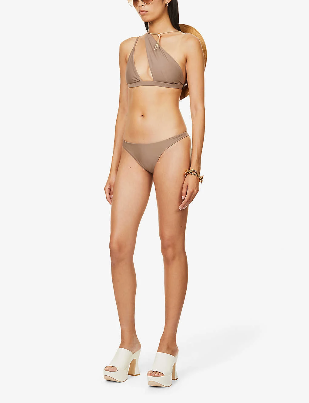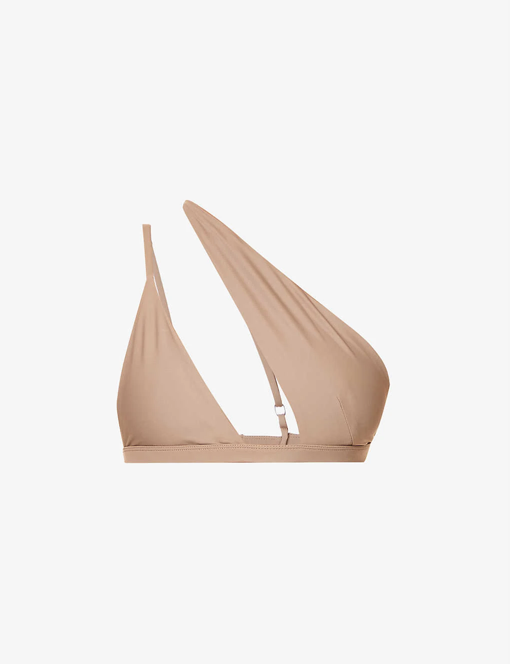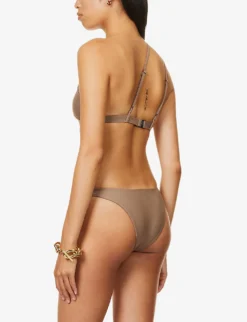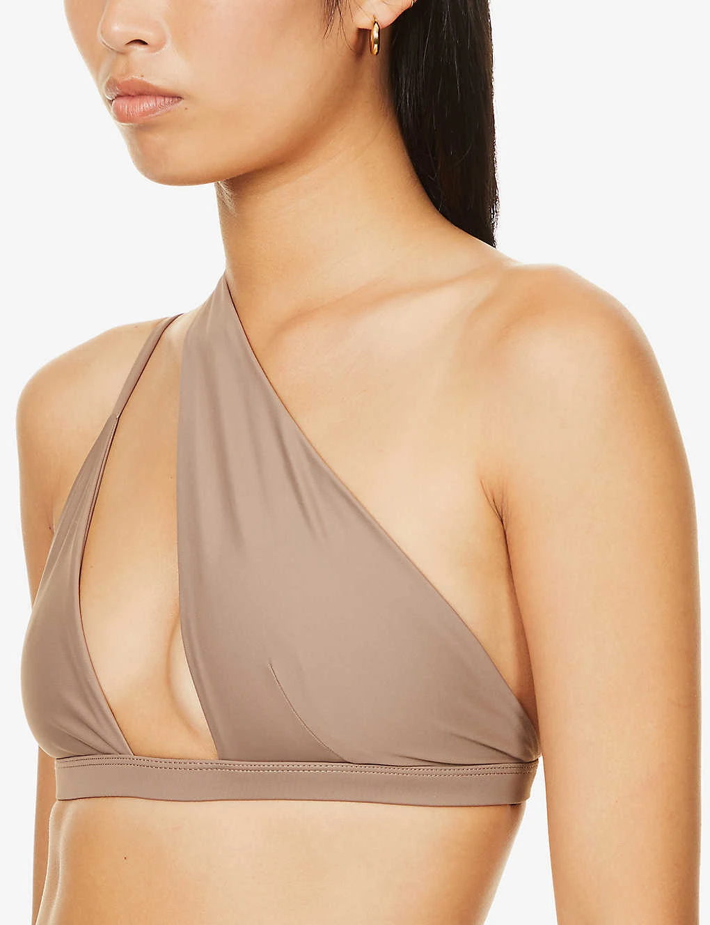 - V-neck, adjustable shoulder straps, soft triangle cups, seamless, elasticated under bandsilver-toned hardware