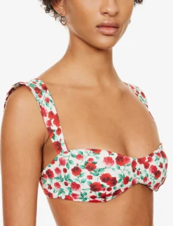Magda Butrym Floral-pattern Sweetheart-neck Bikini Top