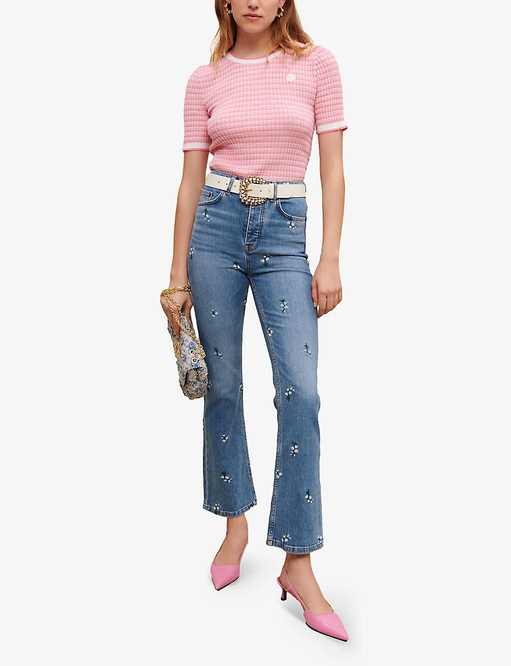 Be the first to review “Maje Floral Crystal-embellished Flared High-rise Stretch-denim Jeans” Cancel reply