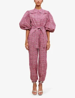 Maje Pyad Floral-print Puff-sleeve Cotton Jumpsuit