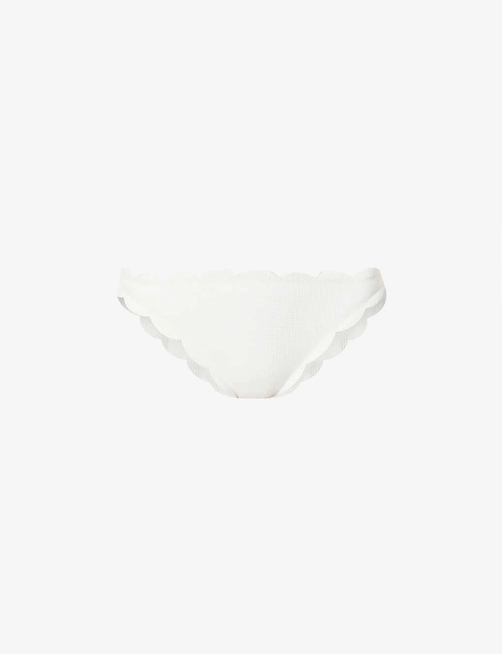 - Mid-rise, elasticated waistband, all-over textured panels, scalloped trims, full-coverage at back