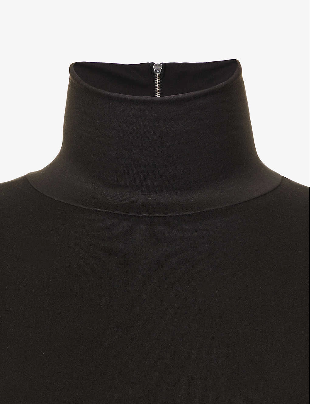 - Fitted, turtleneck, long sleeves, silver-toned hardware, fully lined