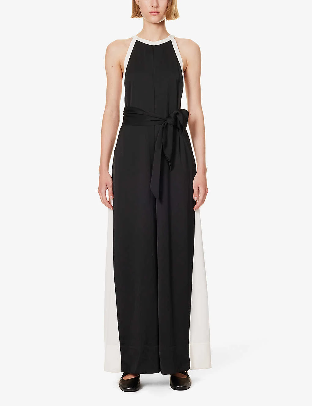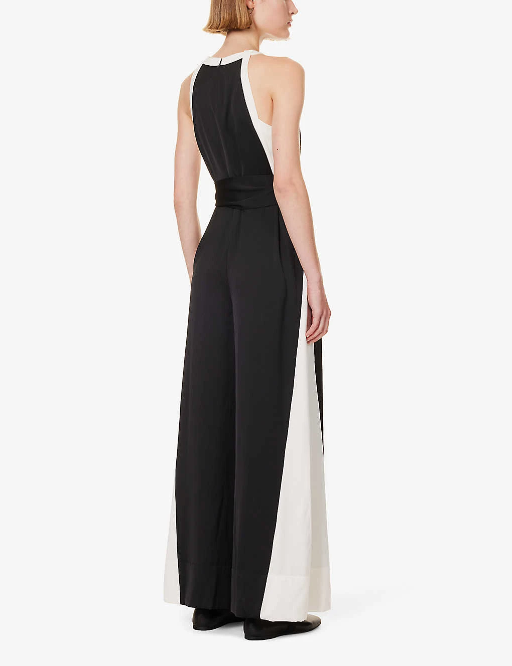 - Regular fit, halterneck, wide leg, sleeveless, self-tie, colour block pattern