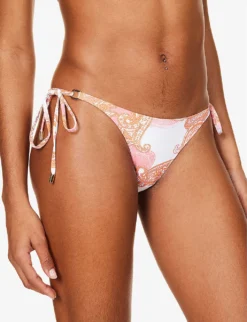 - Regular-fit, mid-rise, all-over paisley pattern, mid-coverage at back, branded gold-toned hardware