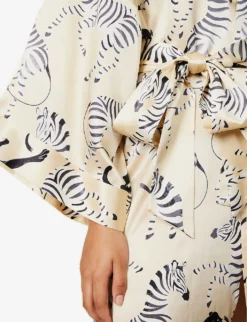 Be the first to review “Mimi Graphic-pattern Shawl-neck Silk Robe” Cancel reply